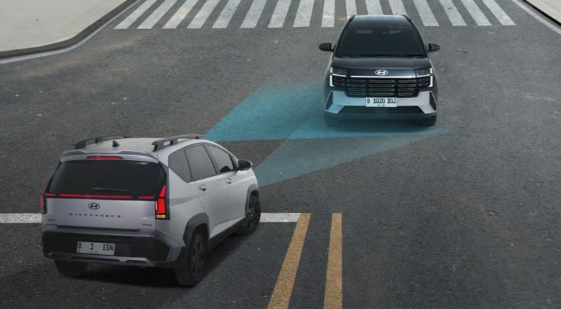 Fitur ini membantu mendeteksi kendaraan yang mendekat di area blind spot dan memberikan peringatan melalui lampu indikator, suara, dan pesan di layar. Jika terdeteksi risiko benturan saat keluar dari parkir paralel, sistem dapat membantu melakukan pengereman untuk menghindari benturan membantu pengereman darurat.