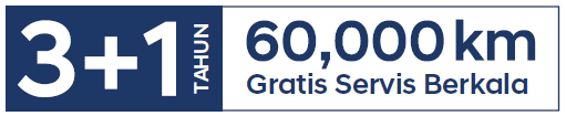 Gratis suku cadang untuk perawatan berkala 4 tahun/60.000 km, mana yang tercapai terlebih dahulu.